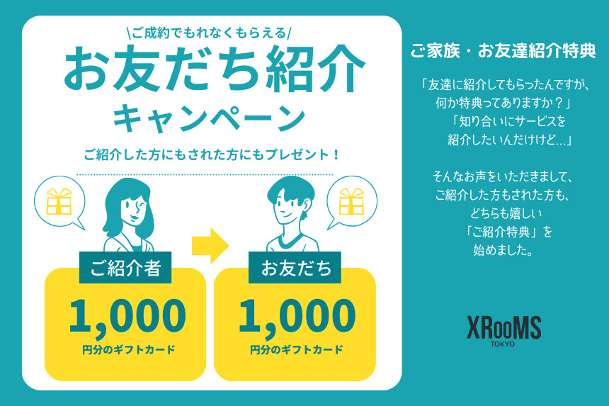 VR内見で賃貸物件を確認!XROOMS > XROOMSのスタッフブログ一覧 > お友だち紹介キャンペーン